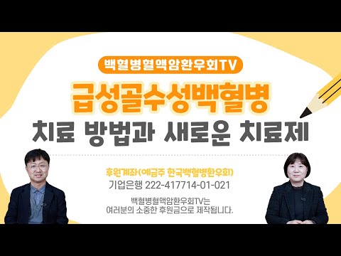 오늘 백혈병혈액암환우회TV에서는 급성골수성백혈병의 치료 과정에 대한 기본적인 안내와 새로 출시된 치료제에 대하여 소개하는 시간을 가졌습니다.
