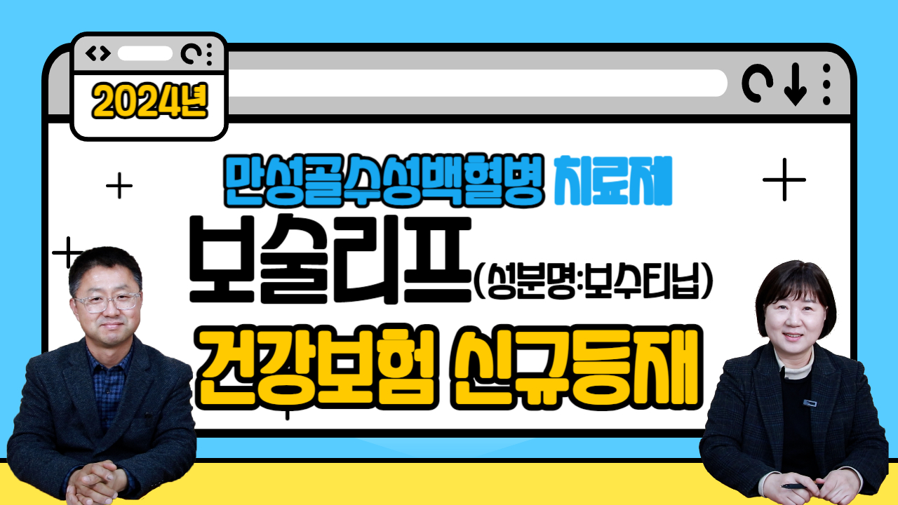 백혈병환우회에서 운영하는 공식 유튜브 채널 "백혈병혈액암환우회TV"에서 1월 1일부로 건강보험 신규등재가 된 보술리프 (성분명: 보수티닙)에 대한 정보를 영상으로 제작 했습니다. 보술리프의 적응증과 중요한 키포인트, 영상으로 만나보세요!