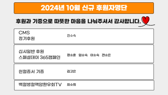 백혈병환우회에 십시일반 후원으로 따뜻한 마음을 전해주세요!