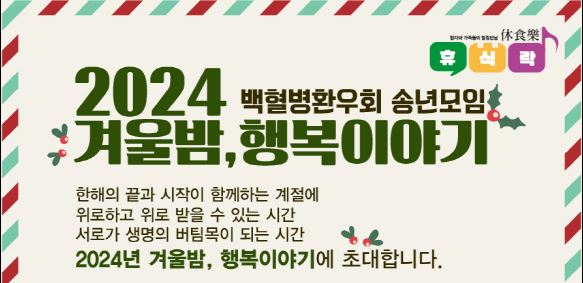 [공지] 백혈병환우회 송년모임 2024 겨울밤 행복이야기에 초대합니다.
