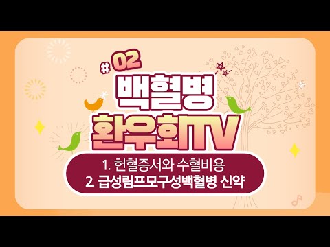 [백혈병환우회TV] 두 번째 방송에서는 헌혈증서와 수혈비용 그리고 급성림프모구성백혈병 신약에 대해 준비했습니다.